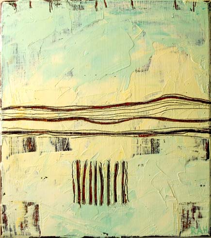 Fabuleringer " Landskap " akryl/olje på tre 22 x 25 2007 solgt Ragnhild A. Holten