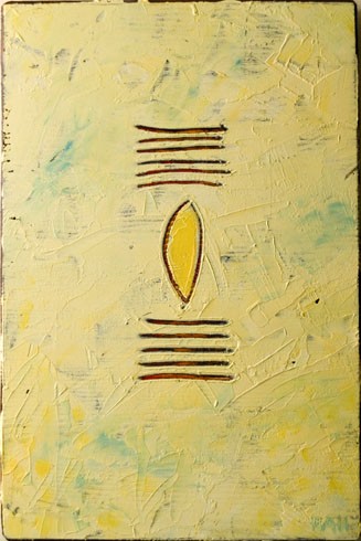 Fabuleringer " Luft med tegn " akryl/olje på tre 17,5 x 26,5 2007 solgt R. A. Holten