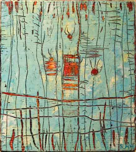 Fabuleringer " Vev " akryl/olje på tre 23 x 25 2006 solgt Ragnhild A. Holten